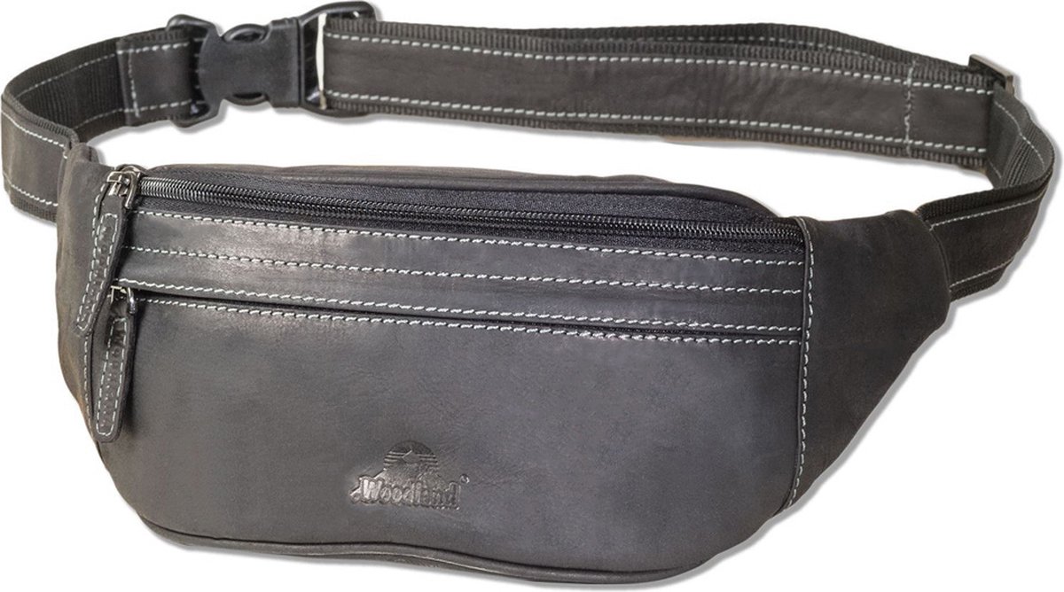 Woodland Leren Heuptas - Buideltas - Soft Look Leder - Antraciet - Zwart