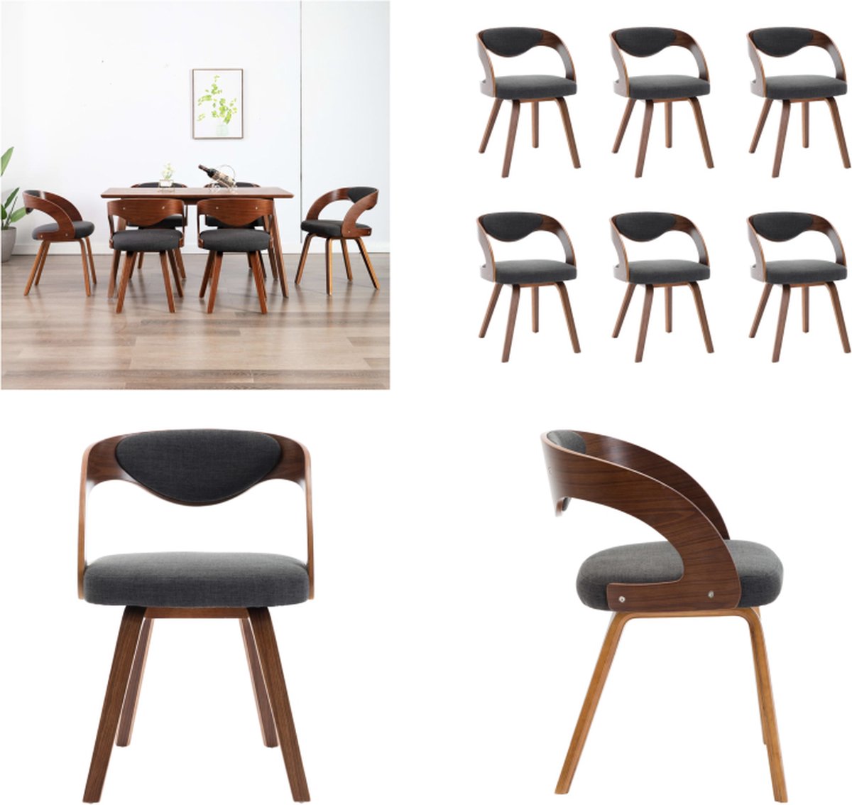 Vidaxl Eetkamerstoelen 6 St Gebogen Hout En Stof Donker - Grijs