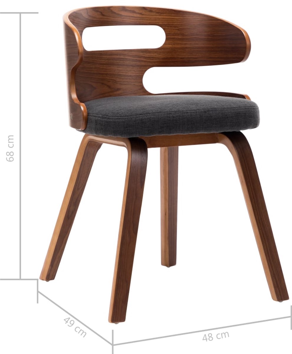Bestel nu de vidaXL Eetkamerstoelen 4 st gebogen hout en stof donkergrijs online bij fonQ en haal een echte blikvanger in huis. De poten zijn gemaakt van gelakt hout voor extra stabiliteit en de zitting is gevoerd voor optimaal comfort.