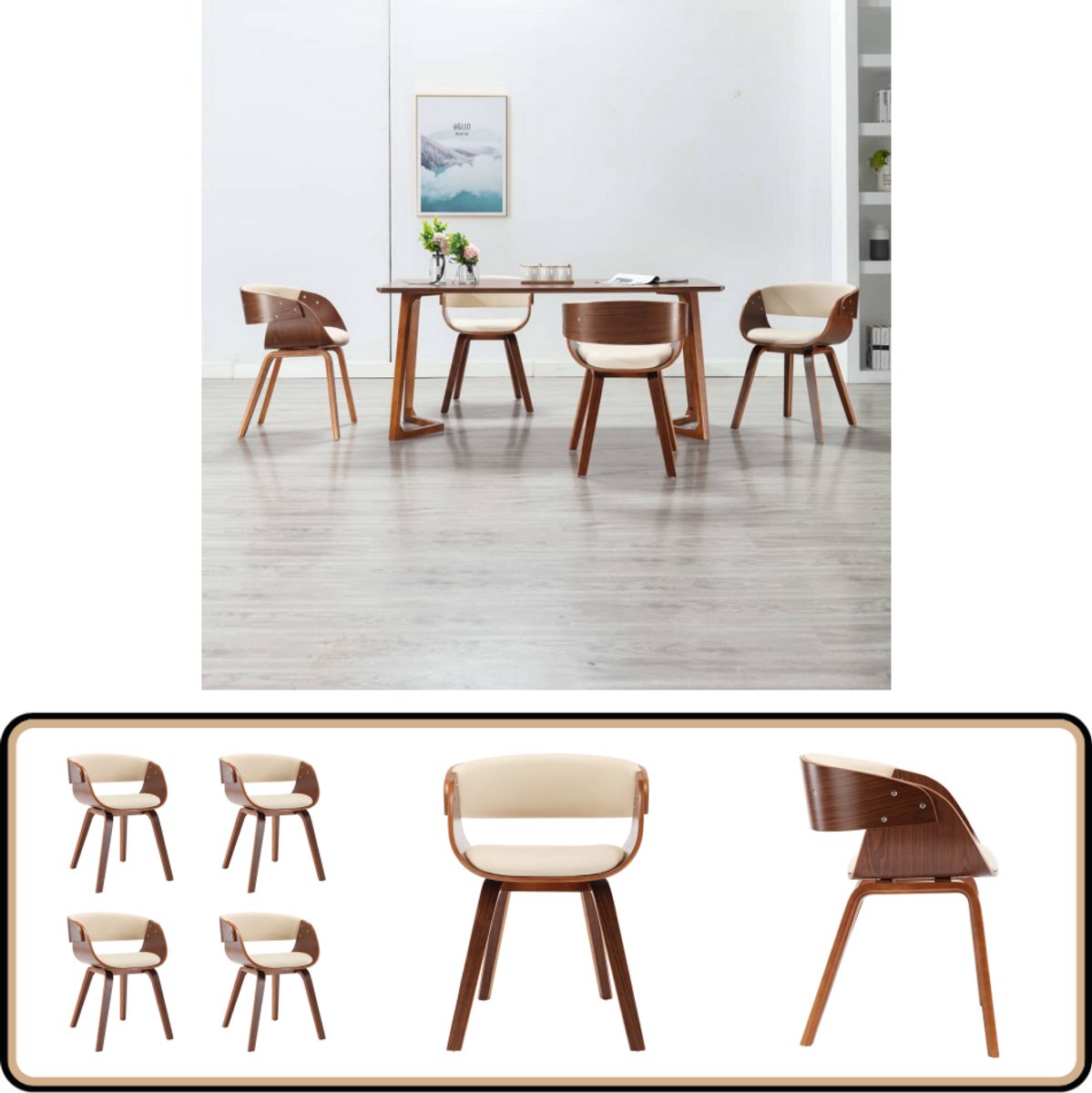 Vidaxl Eetkamerstoelen 4 St Gebogen Hout En Kunstleer Crème