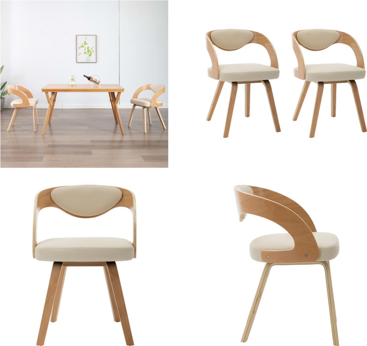 Vidaxl Eetkamerstoelen 2 St Gebogen Hout En Kunstleer Crème