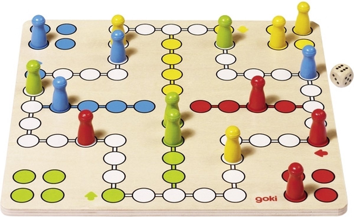 Goki Ludo bordspel - houten familiespel klassiek 2-4 spelersHet Ludo bordspel van Goki brengt het klassieke familiespel tot leven in een prachtige houten uitvoering. Met dit vrolijke spel kun je samen met vrienden of familie proberen om als eerste al je pionnen veilig thuis te brengen. Gooi de dobbelsteen, verplaats je gekleurde pionnen en beleef urenlang speelplezier!Dit houten Ludo spel is geschikt voor 2 tot 4 spelers en is ideaal voor kinderen vanaf 4 jaar. Het stevige speelbord en de kleurrijke pionnen zorgen voor een gezellige sfeer aan tafel. Ludo is makkelijk te leren, maar blijft spannend tot het einde. Wie bereikt als eerste het thuisvak?Extra informatieGemaakt van hoogwaardig hout voor langdurig speelplezierGeschikt voor 2 tot 4 spelers, ideaal voor het hele gezinInclusief speelbord, pionnen en dobbelsteenVanaf 4 jaar, stimuleert sociale interactie en spelinzicht.