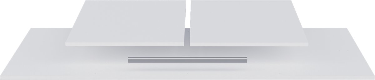 Dit middenschot verdeelt de kastruimte in 2 gedeeltes. Aan de linkerkant bevindt zich een roede van 45 cm en aan de rechterzijde zijn 2 extra legplanken van dezelfde breedte. Het brede legplank bovenin de kast blijft behouden. Let op: deze indeling past alleen in een witte Kaat kledingkast van het merk Woood.