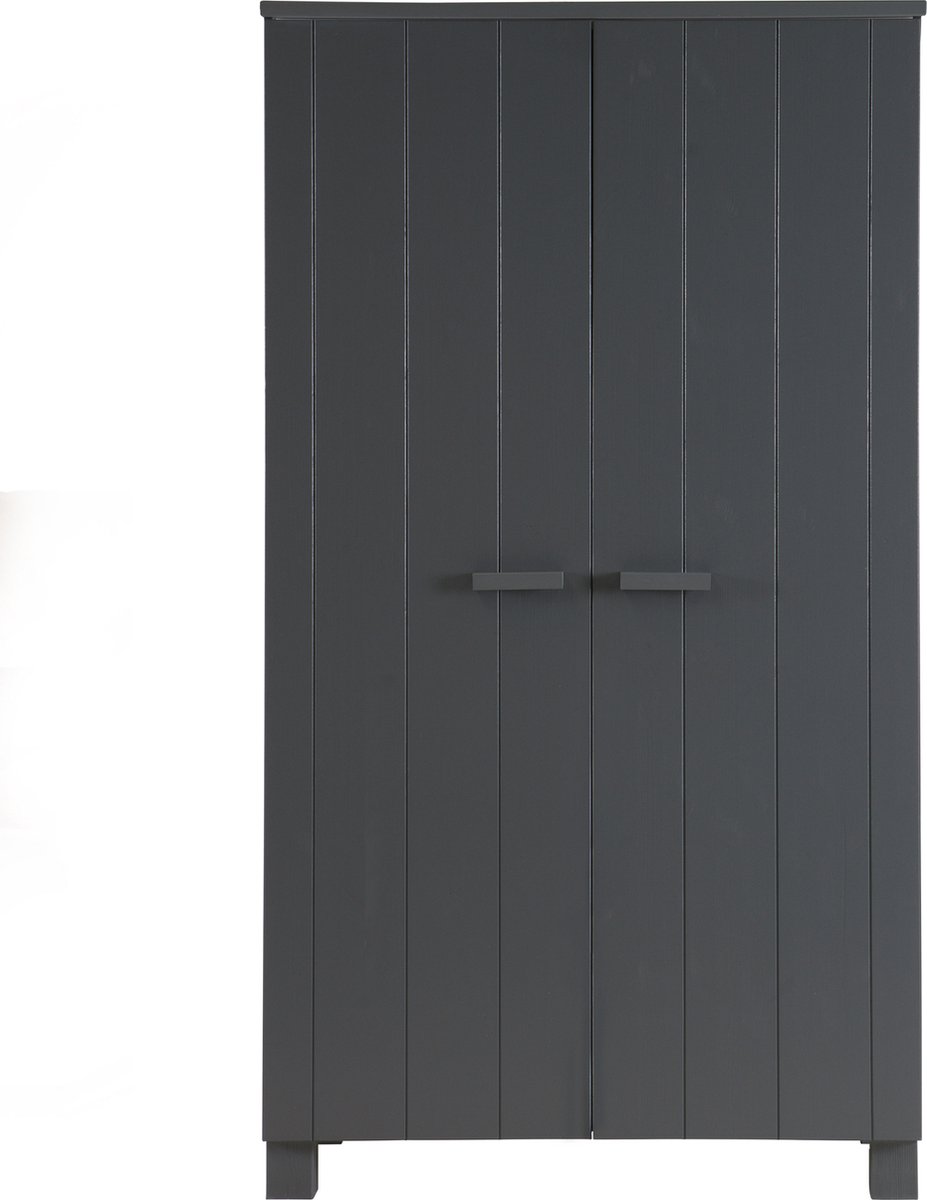 WOOOD Dennis kast 111x202x55 (bxhxd)De WOOOD Dennis kast 111x202x55 (bxhxd) is een stoere, praktische en moderne kast uit de collectie van het Nederlandse merk WOOOD. Deze kast is gemaakt van FSC gecertificeerd grenenhout met een staalgrijze finish en een geborstelde afwerking. De deuren hebben een verticale v-groef belijning. Het interieur van de kast is voorzien van een brede legplank, een roede en drie legplanken aan de re... lees meer over dit product