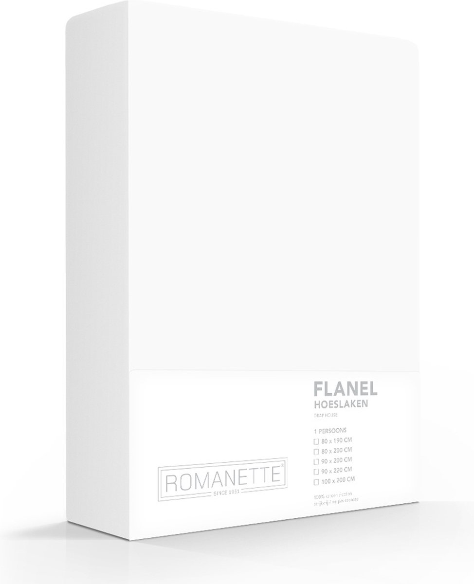 Romanette Flanellen Hoeslaken -180 X 200 Cm - Wit