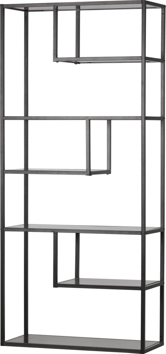 Met de Teun vakkenkast haal je een trendy en eigentijds wandrek in huis dat perfect past in zowel de woonkamer als op een slaap- of werkkamer. Dit zwarte gelakte metalen wandrek heeft een afmeting van 188x85x35 cm (hxbxd) en is ontworpen door het merk WOOOD. Het framewerk van de Teun vakkenkast bestaat uit een zwarte gelakte metalen buis met een afmeting van 20x20 mm. Het rek is voorzien van zeven zwarte gelakte legplanken.
