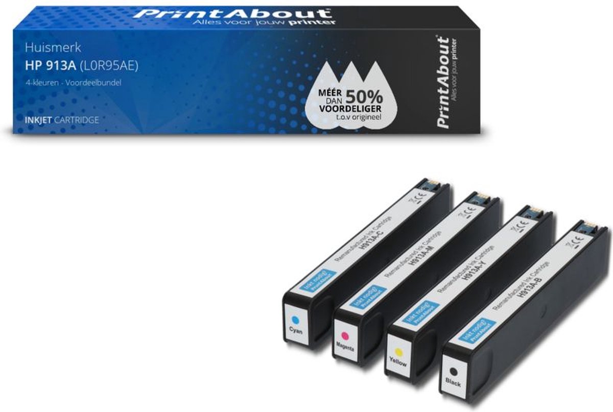 Wil jij ook meer printen voor minder geld? Bestel jouw Huismerk HP 913A (L0R95AE) Inktcartridge 4-kleuren Voordeelbundel vandaag nog!