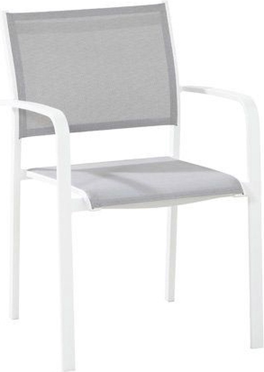 De Tuinstoel Tosca wit aluminium is de perfecte tuinstoel voor elke tuintafel. De stoel is vervaardigd uit aluminium en daardoor licht van gewicht, onderhoudsvriendelijk en stevig. De stoel heeft een wit aluminium frame en een grijze zitting en rugleuning van textileen, welke zorgt voor een geweldig zitcomfort. Stapel de Tosca tuinstoelen eenvoudig in elkaar en je hebt er weinig omkijken naar.