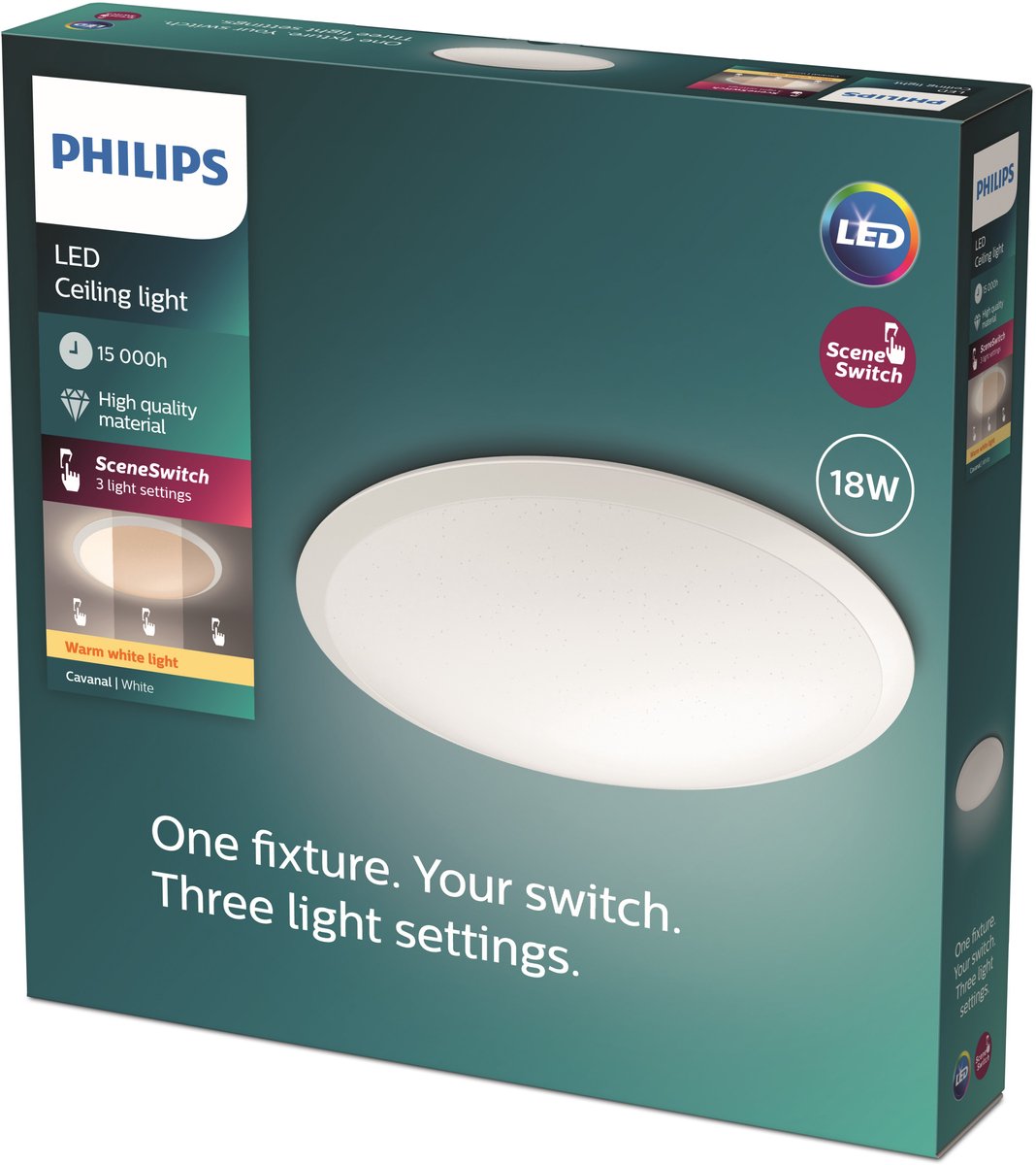 Eén lamp. Jouw schakelaar. Drie lichtinstellingen.Voor elk moment de perfecte sfeerDe Philips Cavanal is een tijdloze ronde LED-plafondlamp die door zijn witte kleur in elk interieur past. Dankzij de ingebouwde stapsgewijze dimmer kies je eenvoudig de juiste tint warmwit licht met jouw bestaande lichtschakelaar. Daar heb je dus geen dure LED-dimmer of extra installatiewerk voor nodig. De unieke materiaalkeuze zorgt bovendien v... lees meer over dit product