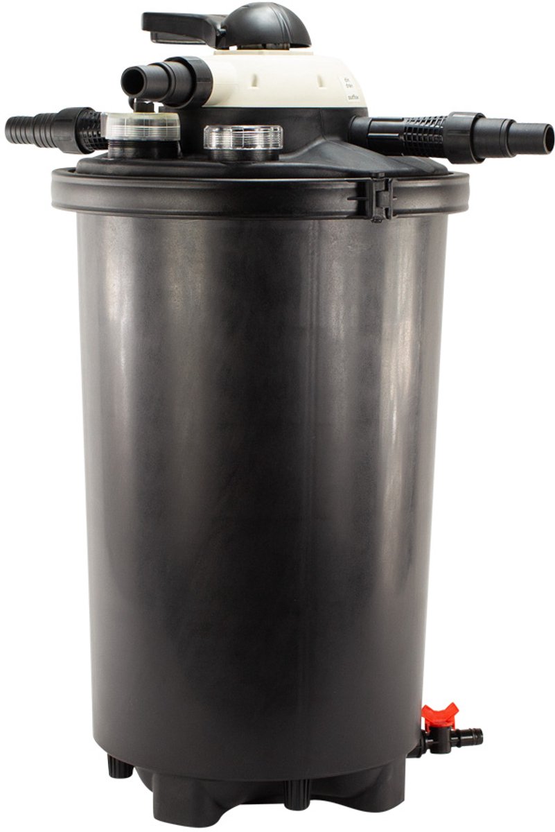 Als je een fontein, waterval of beekloop neemt, is het belangrijk dat het vijverwater helder wordt én blijft. Het Clear Control drukfilter kan een hoge druk weerstaan en het water kan na het filter nog een hoogteverschil overbruggen. Dit filter is zeer gebruiksvriendelijk en eenvoudig te reinigen. Naast de normale filtratie zijn er diverse stroomrichtingen mogelijk voor het toedienen van vismedicijnen, reinigen van het filter of leeglopen van de vijver. De ingebouwde UVC lamp doodt zweefalgen en ziektekiemen en maakt groen vijverwater snel weer helder. Inclusief alle filtermaterialen en aansluitstukken voor slangdiameter 32 en 40 mm.