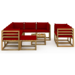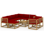 Vidaxl 10-delige Loungeset Met Wijnrode Kussens - Bruin