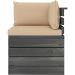 Het gebruik van natuurlijk grenenhout betekent dat de set mogelijk enkele oneffenheden heeft, waardoor elke set uniek is. De kussens zijn uitgevoerd in een stijlvolle beige kleur en zijn gemaakt van hoogwaardige materialen voor een langdurige duurzaamheid.