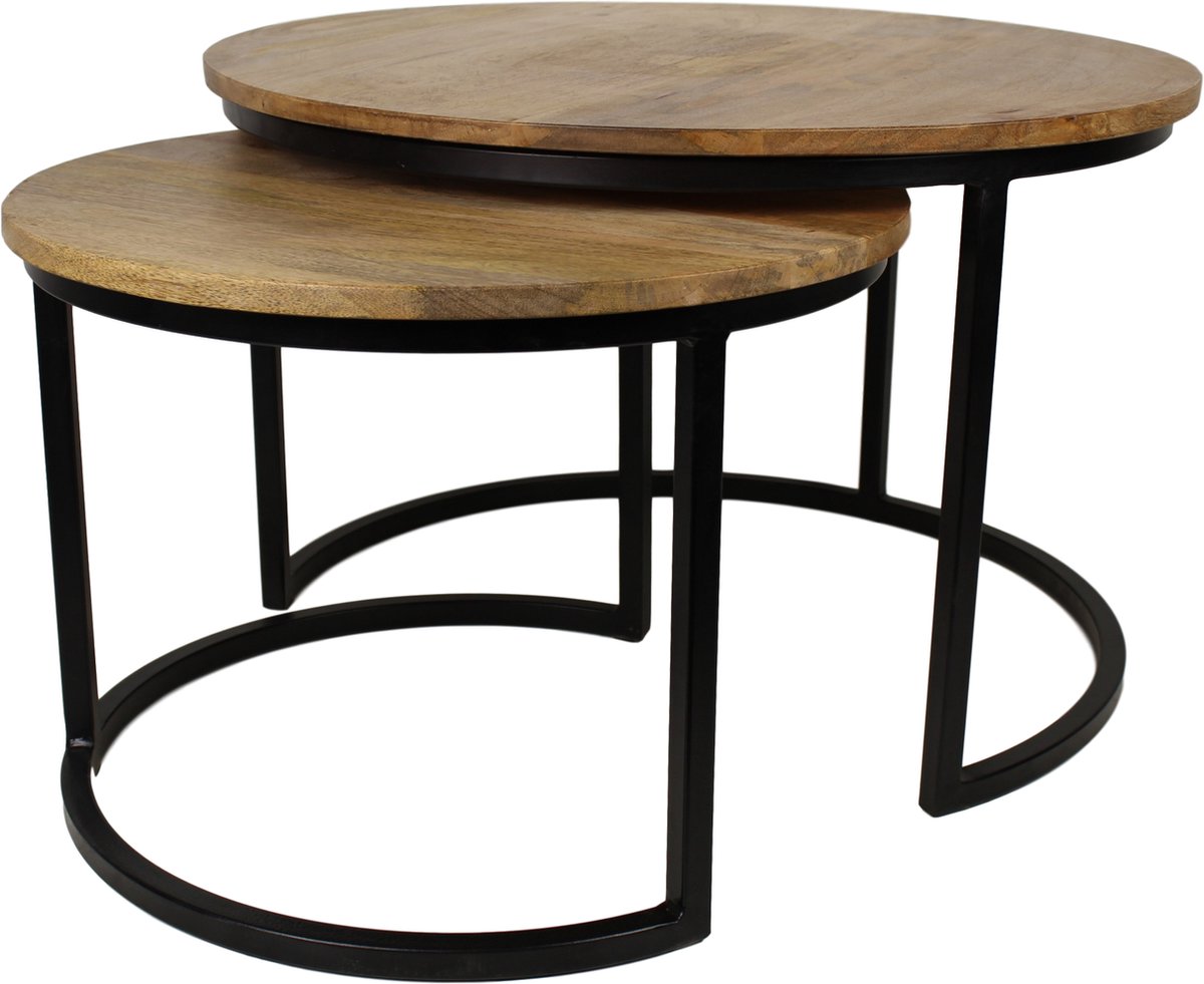 Multifunctionele salontafels met industriële lookMet de salontafels van HSM Collection haal je een multifunctionele set van tafels in huis! Deze set combineert twee mooie salontafels die apart als bijzettafel gebruikt kunnen worden of gezamenlijk als salontafel. De salontafels hebben afzonderlijk de volgende maten; groot: 70 x 70 x 46 cm, medium: 55 x 55 x 40 cm. Gemaakt van mangohout met een robuust stalen onderstel, hebben ... lees meer over dit product