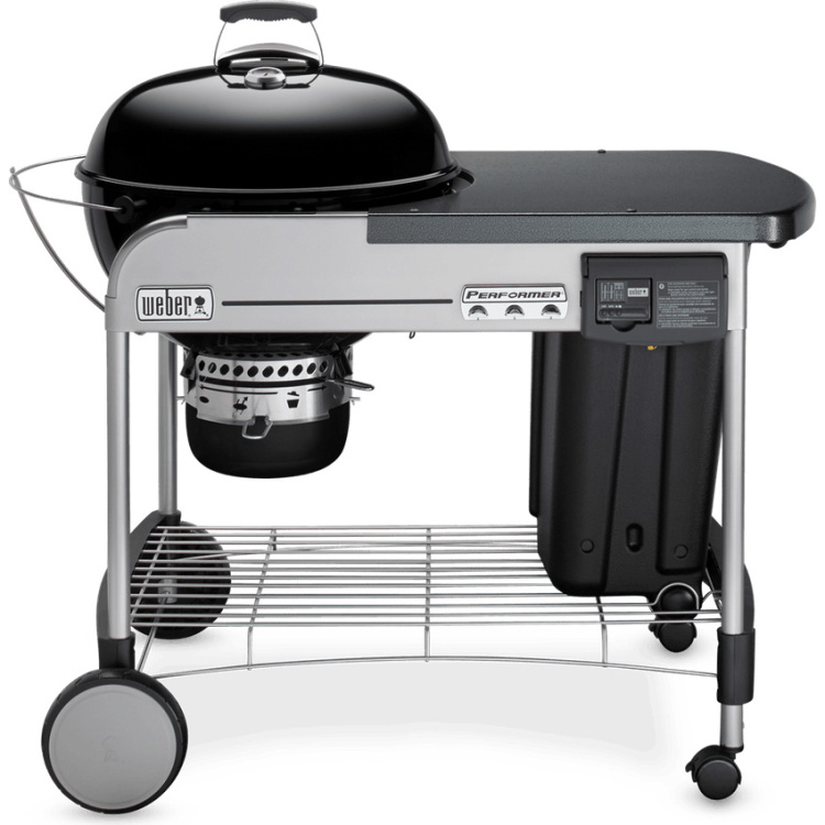 De Performer Deluxe GBS 57 cm is een houtskoolbarbecue die je vuur doet ontbranden met slechts één druk op de knop. Binnen no-time zijn de kolen gloeiend heet en begint het eten verleidelijk te sissen. Nu hoef je alleen nog maar te wachten en te genieten terwijl de barbecue al het werk doet.