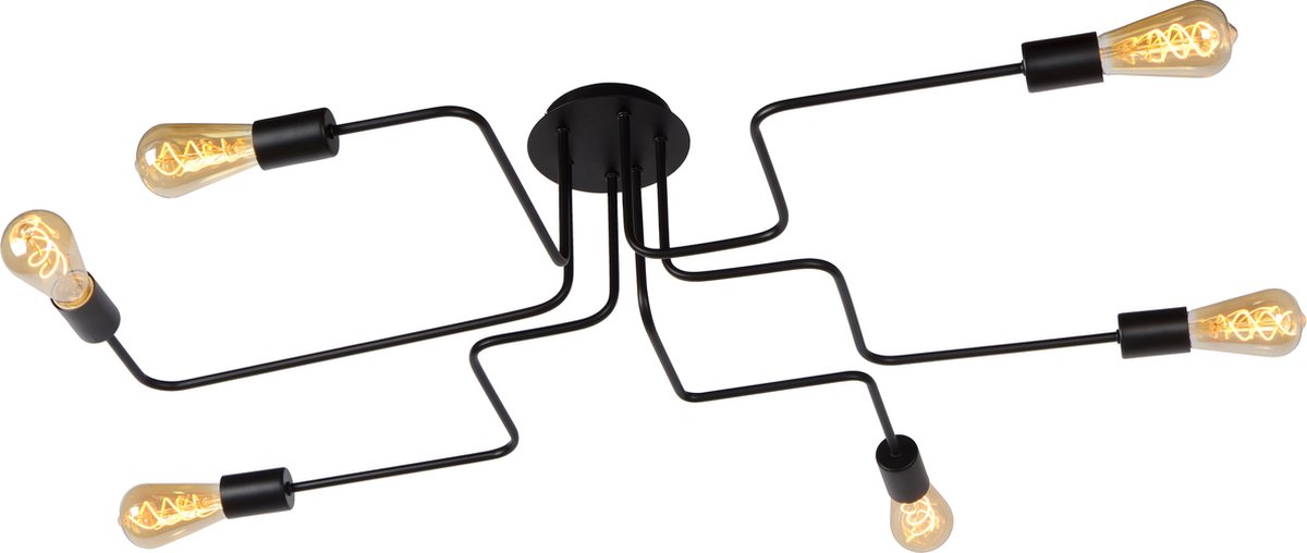 Creëer een sierlijk lijnenspel op je plafond met de moderne en landelijke plafondlamp Lester. Deze lamp heeft een inventief ontwerp met zes vaste armen, waarin je lichtbronnen naar keuze kunt plaatsen (niet meegeleverd). Het hoogwaardige metaal geeft de lamp een klassieke uitstraling, terwijl de opvallende vormgeving direct de aandacht trekt. Of je nu de woonkamer, keuken of slaapkamer wilt verlichten, de zes lichtpunten zorgen voor een aangename gloed door de hele ruimte. Bediening is eenvoudig via een wandschakelaar.
