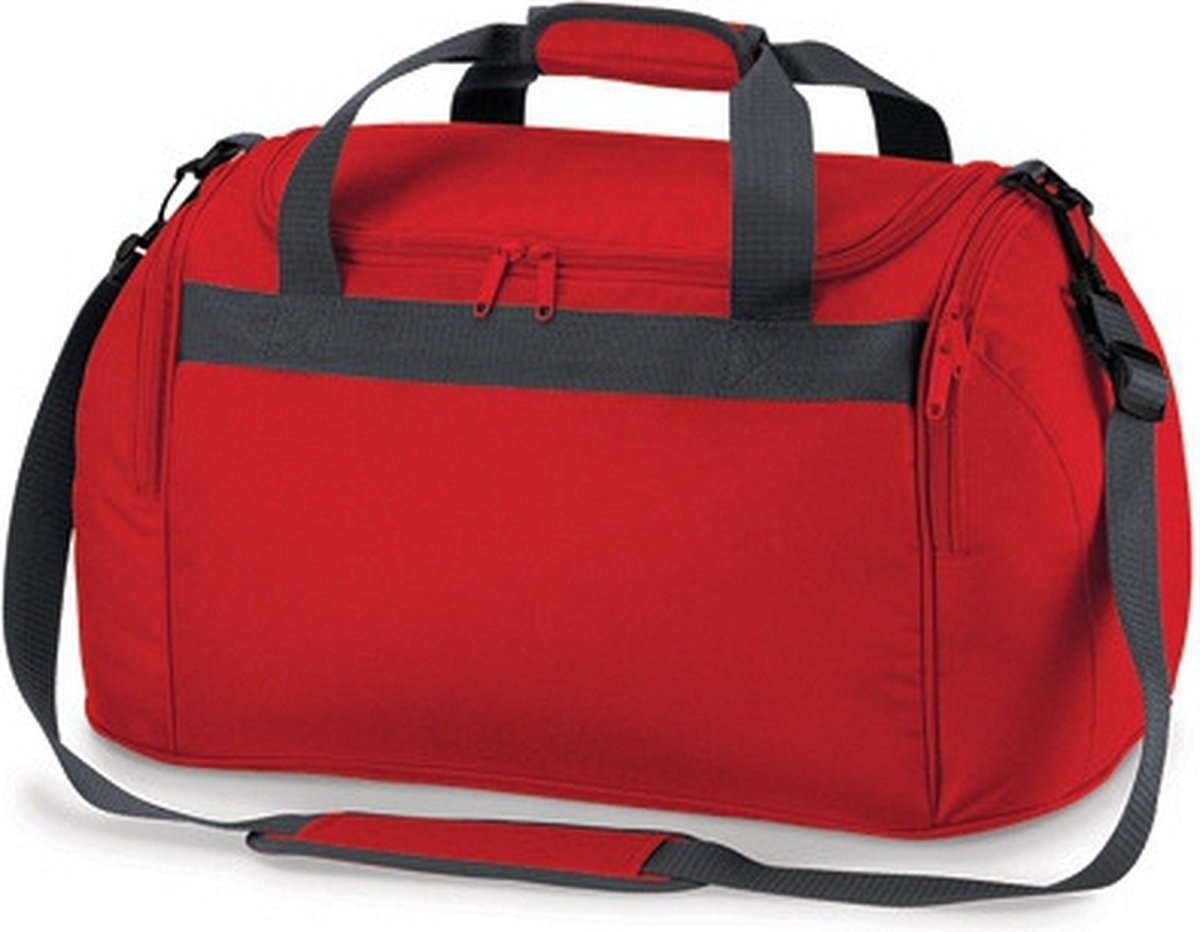 Rode weekendtas. Deze compacte weekendtas van BagBase in klassiek rode kleur heeft een inhoud van ongeveer 26 liter. Het formaat van deze weekendtas is ongeveer 54 x 28 x 25 cm.