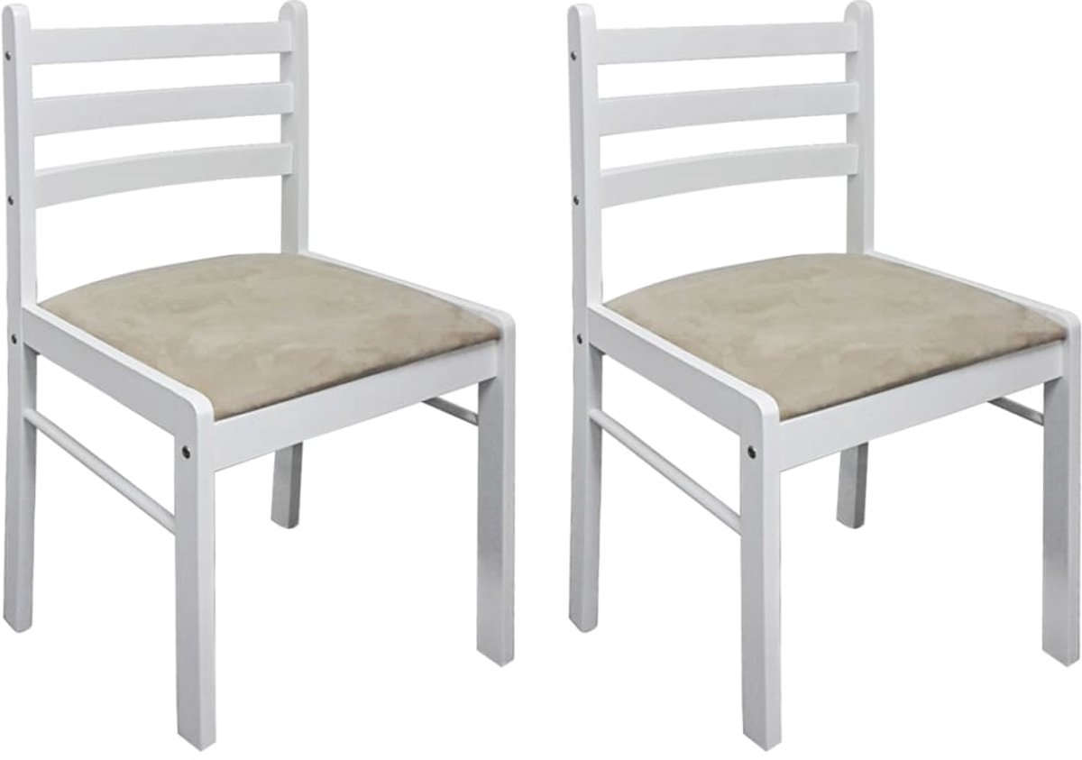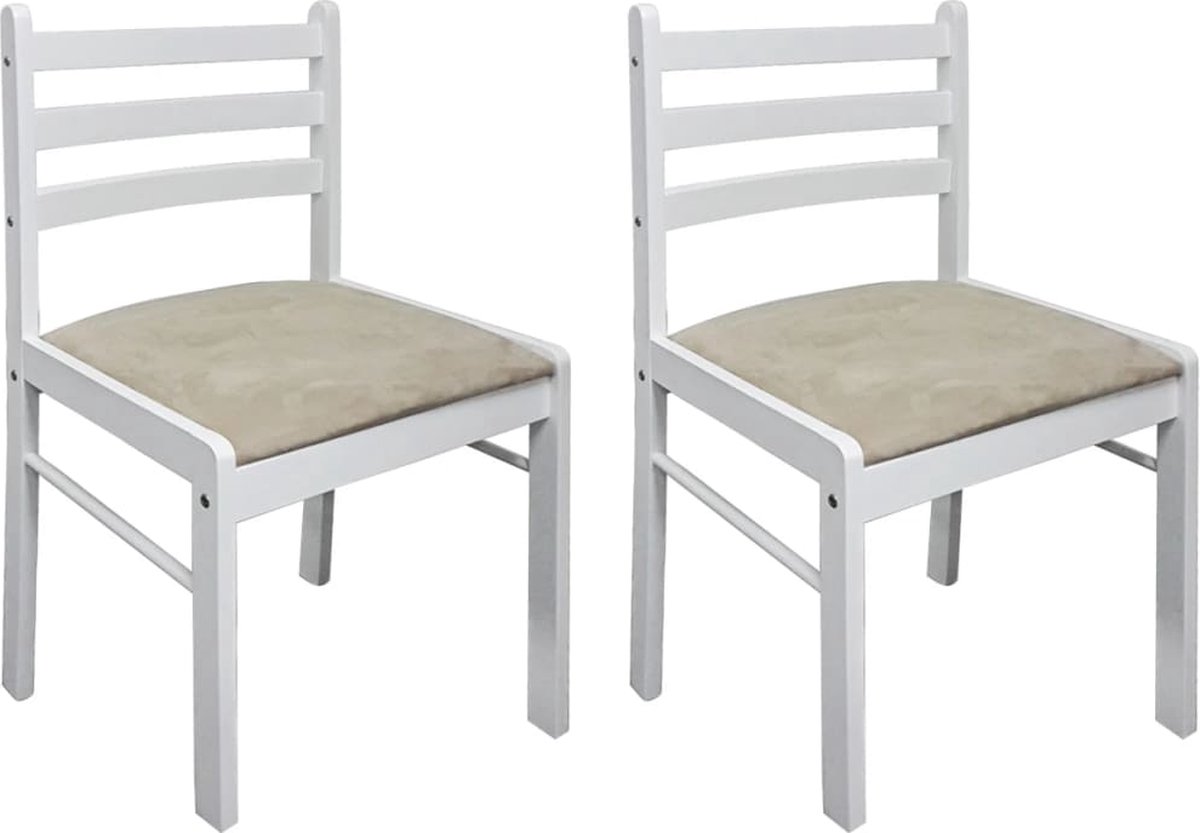 Vidaxl Eetkamerstoelen 2 St Massief Rubberwood En Fluweel - Wit