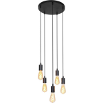Dankzij de metalen elementen heeft de hanglamp Brandon een strakke en eigentijdse uitstraling. De vijf zwarte pendels hangen op verschillende hoogtes aan een ronde zwarte plafondplaat van metaal. Hierdoor is deze lamp niet alleen functioneel maar ook een echte eyecatcher in jouw hal, slaapkamer of woonkamer.