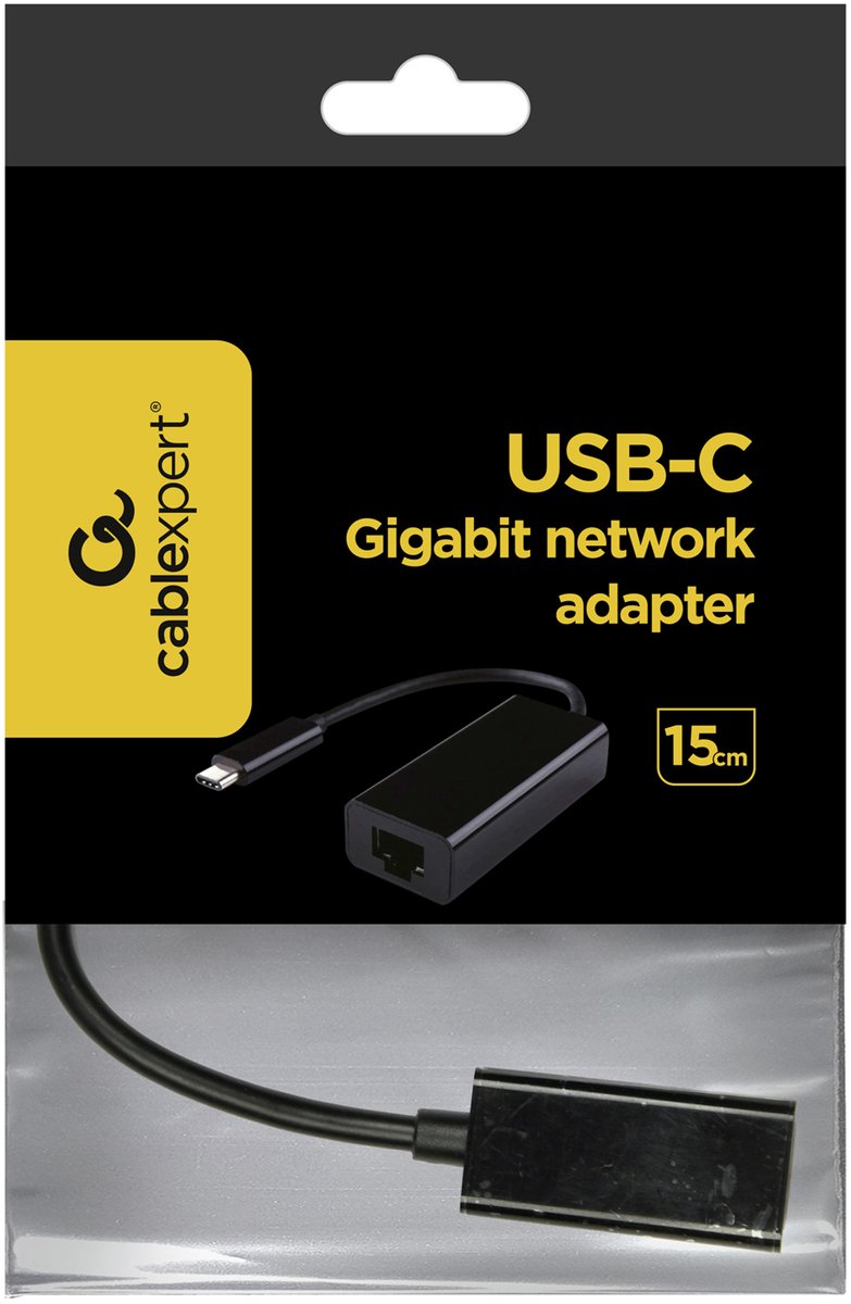 Met deze Cablexpert netwerkadapter USB-C Gigabit zwart 15cm verbind je heel makkelijk je computer met het netwerk. Met de adapter sluit je via de USB-C het apparaat aan op het netwerk. Met deze adapter is het mogelijk om met een 10/100/1000 Mbps LAN netwerk te verbinden.