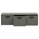 De opbergbakken van deze kistbank hebben een breedte van 34 cm, een diepte van 44 cm en een hoogte van 26 cm, waardoor er voldoende ruimte is voor het opbergen van al je benodigdheden. De bakken zijn voorzien van een stijlvolle bruine leren greep en staan op wieltjes, waardoor ze gemakkelijk in en uit te schuiven zijn. Hierdoor heb je altijd snel toegang tot je spullen.