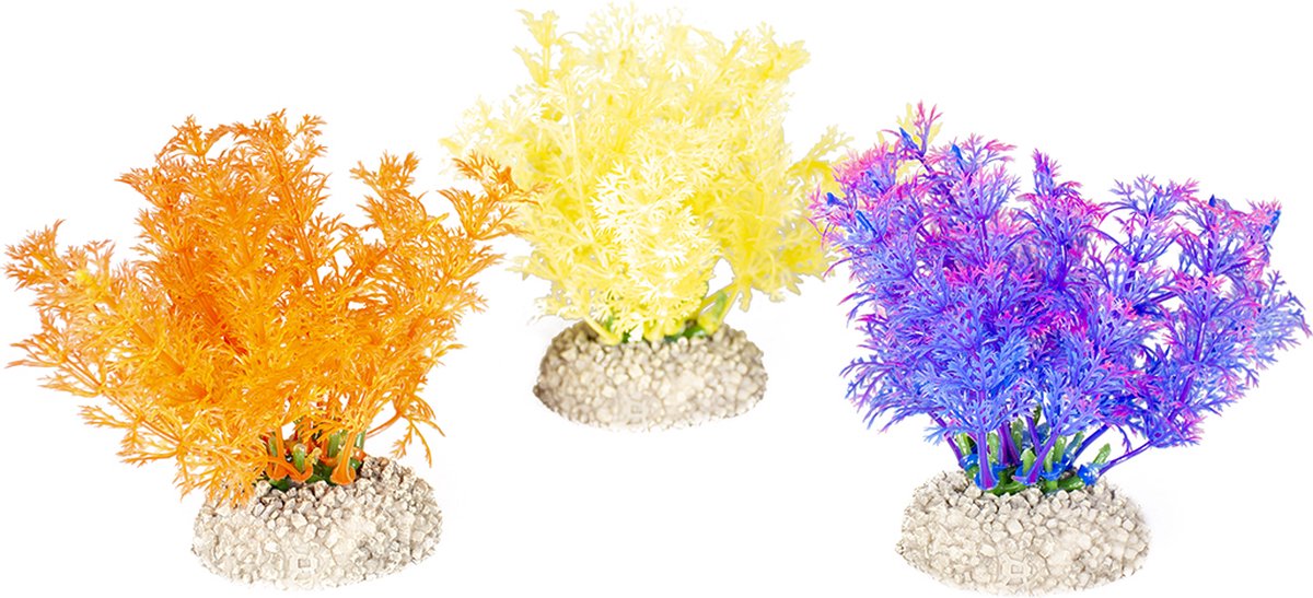 De voet van het ornament is gemaakt van polyresin, dit is 100% gifvrij en geheel veilig voor je vissen, planten en water. Dankzij deze voet blijft het ornament goed in de bodem staan. De planten zelf zijn gemaakt van flexibel kunststof en bewegen op een natuurlijke manier met de stroming mee. Je kan de decoratie in zowel zoet- als zoutwateraquaria plaatsen. Kleurveranderingen zijn na enige tijd niet uit te sluiten. Ook geschikt voor in het terrarium. Spoel het ornament voor gebruik voorzichtig af met warm water (géén zeep e.d. gebruiken, enkel afspoelen).