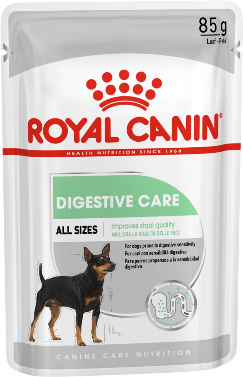 Spijsverterings ongemakken zijn voor niemand leuk, ook niet voor je hond. Een voeding met hoogwaardige voedingsstoffen draagt niet alleen bij aan het spijsverteringscomfort van je hond, maar ook aan zijn algemene welzijn. ROYAL CANIN® Digestive Care in Loaf (paté in saus) is geschikt voor honden van alle groottes. Deze natvoeding bevat zeer goed verteerbare eiwitten, samen met een combinatie van prebiotica en vezels voor een e... lees meer over dit product