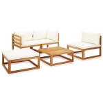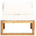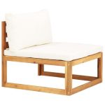 - Kleur: natuurlijke houtkleur en crèmewit (kussens)- Materiaal: massief acaciahout met olieafwerking en stof