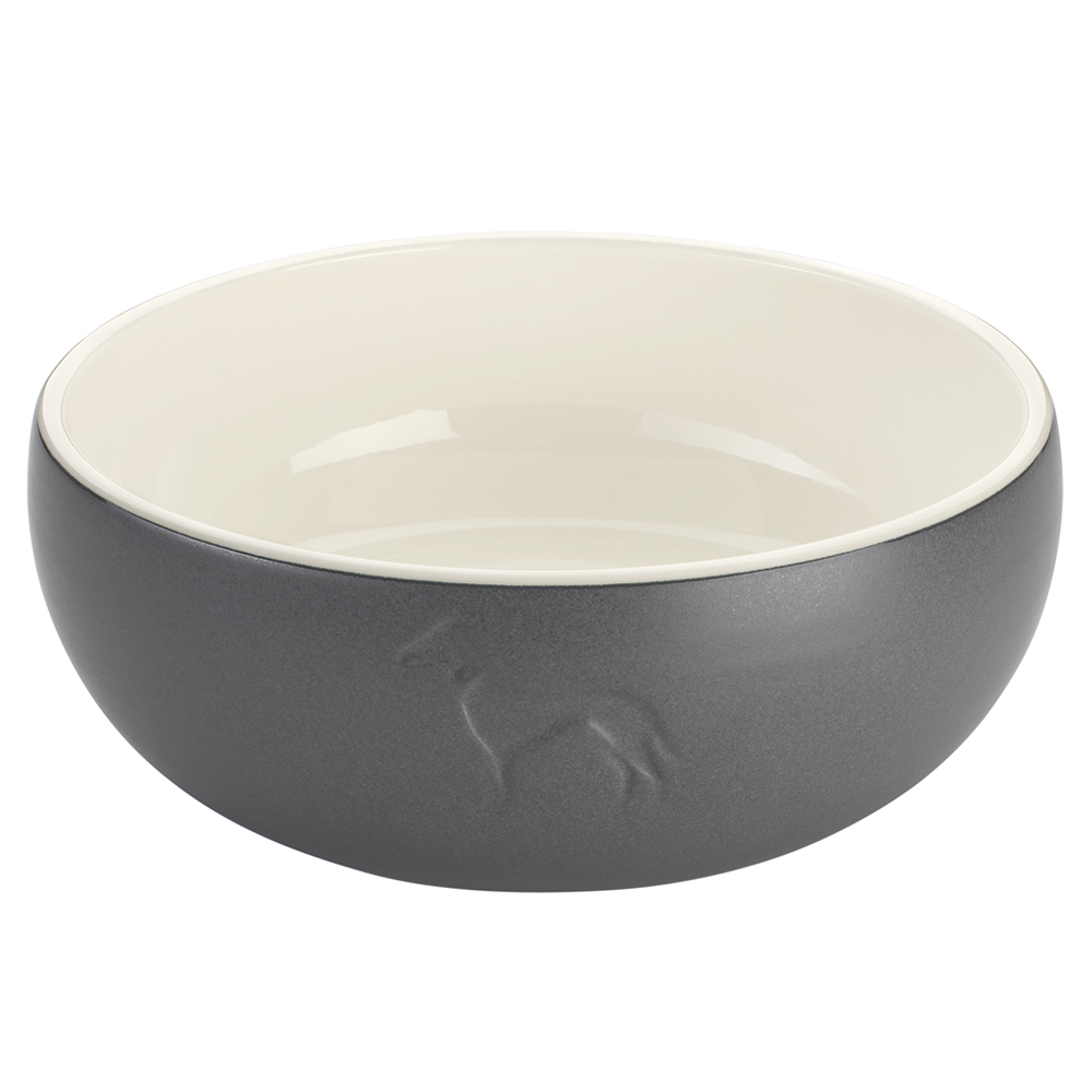 Deze keramische voerbak is een casual en moderne toevoeging aan elk huis. De aangename natuurlijke kleuren en de klassieke komvorm met de elegante opdruk van het hondensilhouet zorgen ervoor dat jouw hond zich meteen thuis voelt.