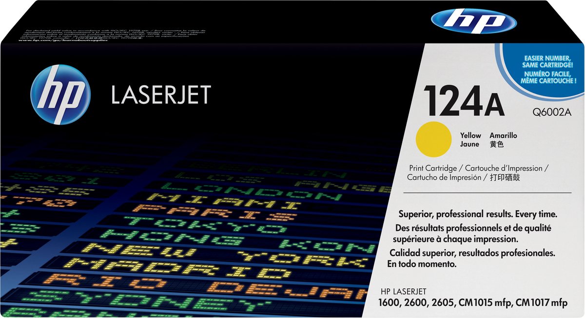 | Verpakkingsinhoud | HP 124 LaserJet printing supplies met ColorSphere toner zijn afgestemd op het printsysteem om de kwaliteit en betrouwbaarheid te optimaliseren en briljante prints van fotokwaliteit te leveren. Dankzij de online bestelmogelijkheid via HP SureSupply bespaar |