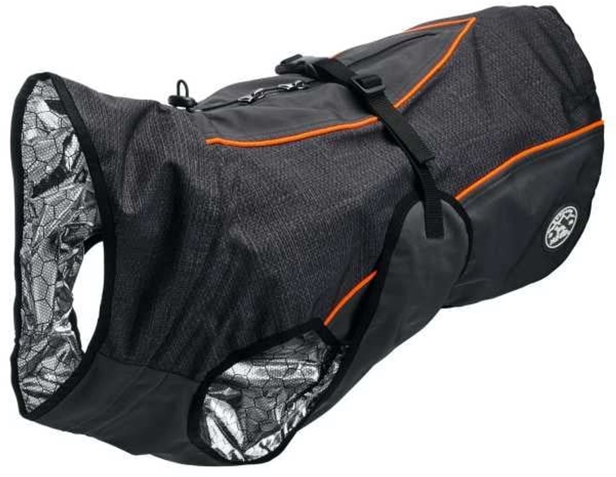 Wat de Uppsala Thermo uniek maakt, is de voering. De binnenzijde is voorzien van een speciale thermische folie die de natuurlijke lichaamswarmte van de hond terug reflecteert. Dit principe werkt hetzelfde als een nooddeken voor bergbeklimmers: de warmte blijft binnen, terwijl kou van buitenaf geen kans krijgt.