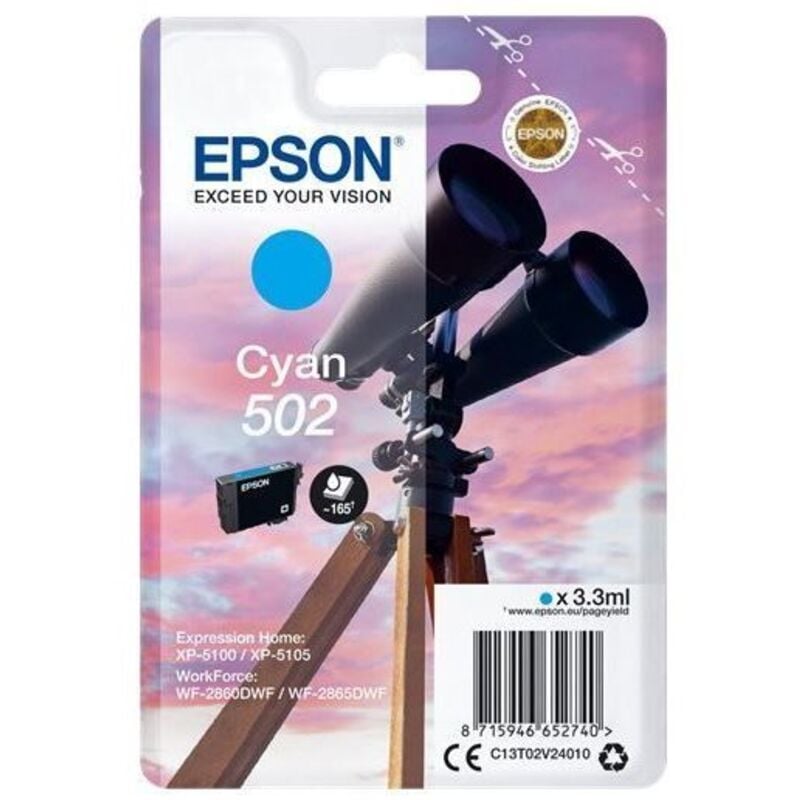 Deze Epson 502 inktcartridge cyaan zorgt voor uiterst kwalitatieve afdrukken in kleur. Afkomstig van de "verrekijker-serie" van Epson, werkt deze cartridge perfect samen met de kleurencartridges om prachtige kleuren op papier te creëren. Met een inhoud van 3,3 ml zwarte inkt biedt de cartridge een capaciteit die mee gaat tot circa 165 pagina's.