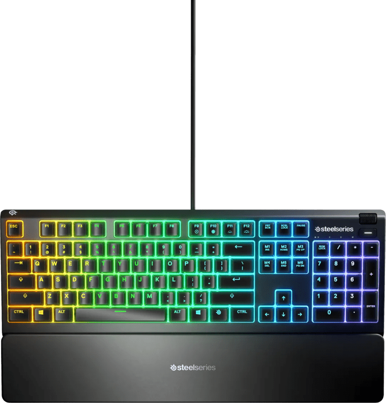 Outshine de competitie met dit zeer toegankelijke SteelSeries Apex 3 RGB Membraan game toetsenbord geschikt voor vrijwel iedere gamer. Dit winnende gaming toetsenbord beschikt over bijna volledig stille membraan switches met lage wrijving en is IP32 waterbestendig. Het heeft prachtige 10-zone RGB verlichting, multimediabediening en komt met een luxe magnetische polssteun voor optimaal comfort. Wacht niet langer, ga voor de Apex 3. Glow up.