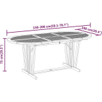 - Tafel: Materiaal: massief eucalyptushout met olieafwerking, Afmetingen: (150 - 200) x 100 x 75 cm (B x D x H),Uitschuifbare functie, Parasolgat;