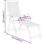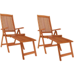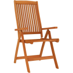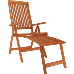 - Stoel: Materiaal: massief eucalyptushout met olieafwerking, Afmetingen: 58 x 71 x 112 cm (B x D x H),Afmetingen stoel met voetensteun: 58 x 115 x 112 cm (B x D x H),Verstelbaar in 5 standen, Inklapbaar voor gemakkelijke opslag.
