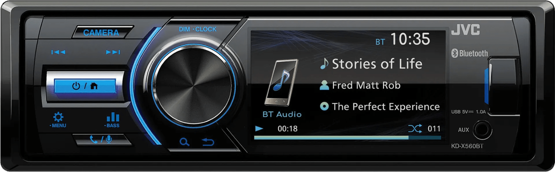 Met de JVC KD-X560BT autoradio geniet je moeiteloos van je favoriete muziek, waar je ook bent. Via de Bluetooth-functie kun je eenvoudig je telefoon of tablet verbinden en draadloos je favoriete nummers streamen. Geen gedoe meer met ongewenste radiomuziek! Daarnaast beschikt deze autoradio over een handige aansluiting voor een achteruitrijcamera, zodat je tijdens het inparkeren altijd zicht hebt op wat er achter je gebeurt. Met de 3 pre-uitgangen kun je bovendien extra apparatuur zoals een versterker of subwoofer aansluiten om de muziek in je auto een extra boost te geven.