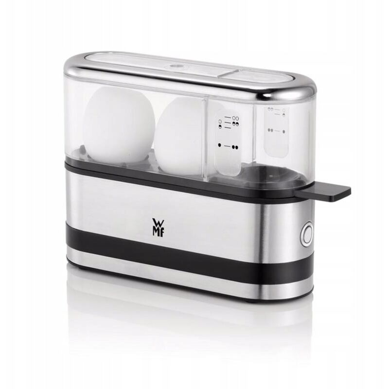WMF KITCHENminis® Eierkoker: het perfecte ei zonder geklungelBen je het zat om te klungelen met een pan kokend water om je ei perfect te koken? De WMF KITCHENminis® Eierkoker is de oplossing! Deze eierkoker maakt het koken van één of twee eieren van maat S tot XL eenvoudig en stressvrij. Geen kans meer op gebroken eieren tijdens het kookproces! Plaats simpelweg de eieren in de koker en laat het apparaat het werk doen. De deks... lees meer over dit product