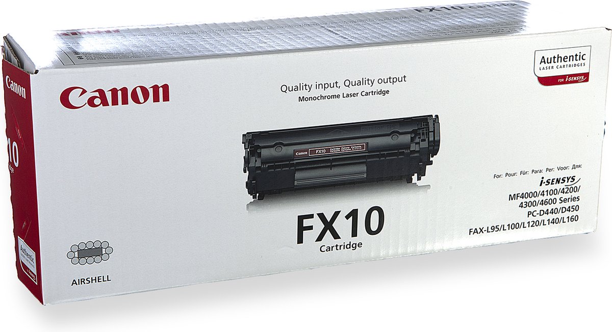 Kenmerken van de Canon Toner FX-10 zwart:Kleur: ZwartType: TonerGeschikt voor de Canon L100/L120/MF4120/MF4140/MF4150 lees meer over dit product