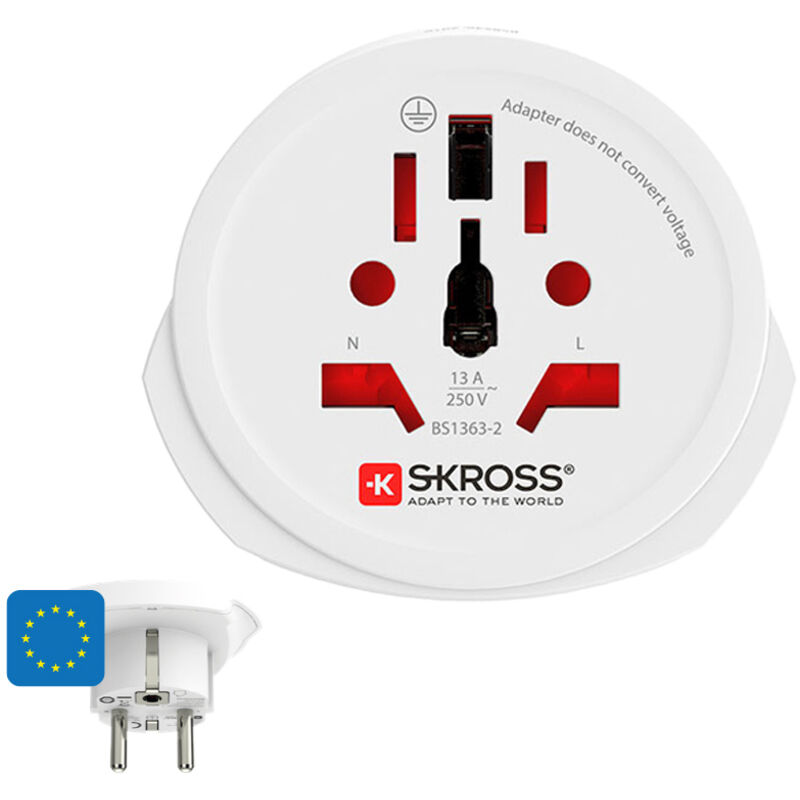 Skross Reisnetadapter Wereld-naar-Europa - Wit