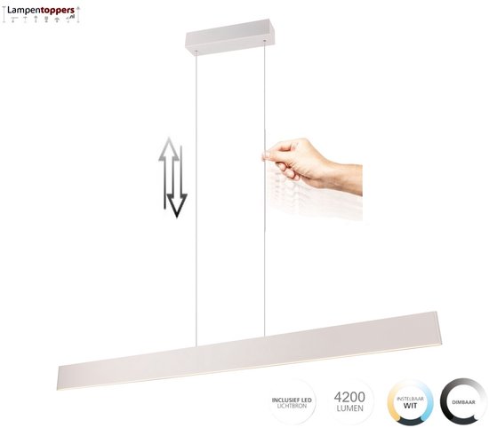 Bovendien kun je met de comfortlift functie de hoogte van de GALWAY flexibel aanpassen voor een optimale positionering van het licht in de woonkamer, eethoek of kantoor. Je kunt de helderheid en lichtkleur ook traploos aanpassen met een dimmer.
