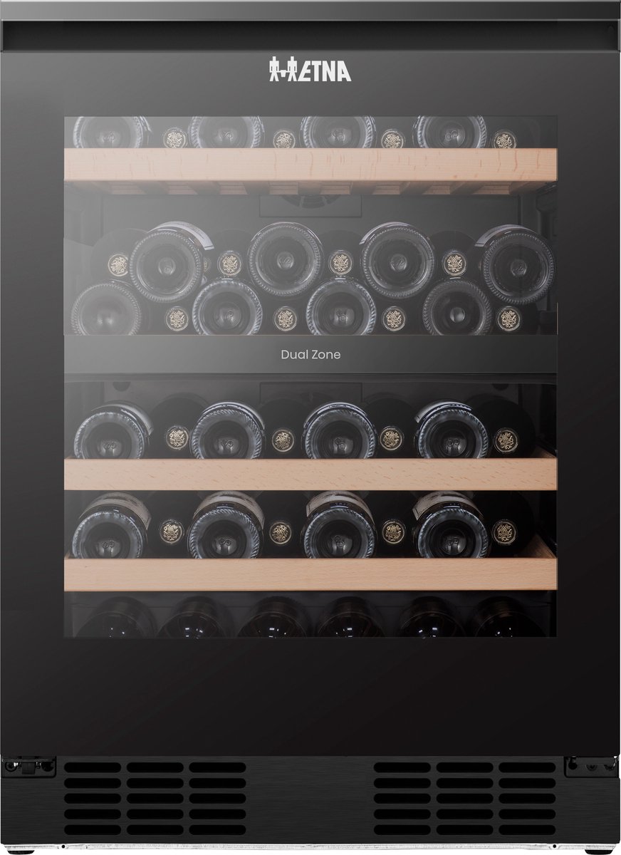 Dit model heeft een totale inhoud van 128 liter en biedt ruimte aan 46 flessen. In de bovenste temperatuurzone is plaats voor 24 flessen, verdeeld over 2 plateaus, waarvan 1 beukenhouten wijnrek. De onderste zone biedt ruimte aan 22 flessen en beschikt over 2 beukenhouten wijnrekken. De wijnrekken zijn voorzien van softclose telescoopgeleiders, wat vibraties voorkomt en zorgt dat de wijn in optimale conditie kan rijpen. Daarnaast is de ETNA WKO546 uitgerust met anti-ijsvorming, actieve luchtcirculatie en trillingsdemping voor stabiele bewaarcondities. De deur is uitgevoerd met UV-werend en Low-E warmtewerend glas, zodat je wijnen goed beschermd blijven.