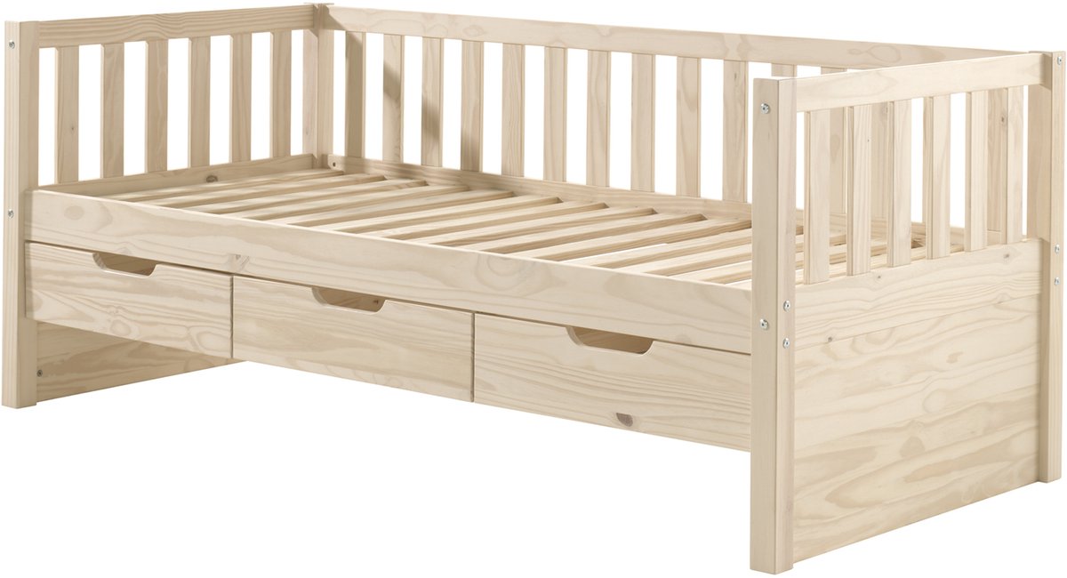 Kajuitbed Friedrich uit massief dennenhout met 3 lades. Lattenbodem inbegrepen.