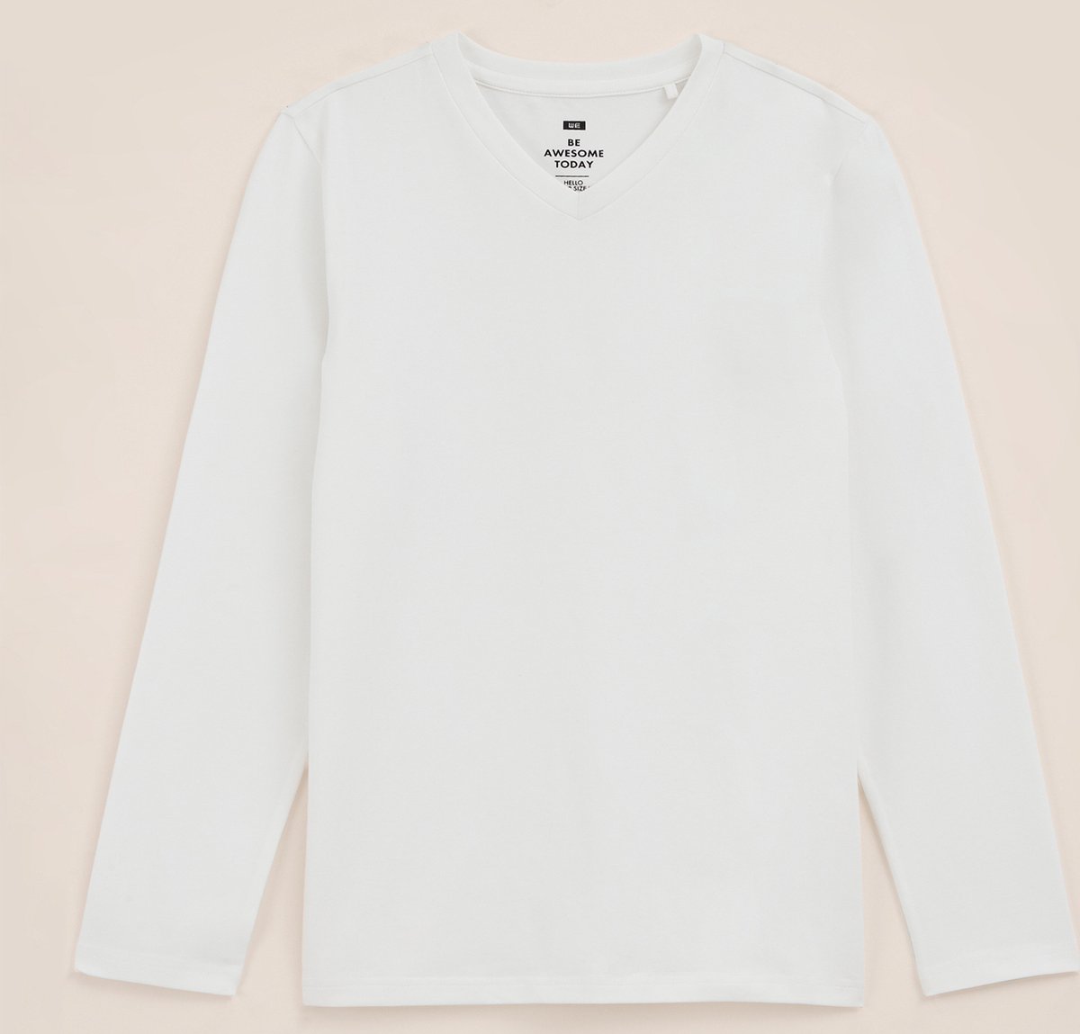 Een regular fit T-shirt van katoen met toegevoegde stretch, een V-hals en lange mouwen, waarmee je altijd stijlvol voor de dag komt. lees meer over dit product