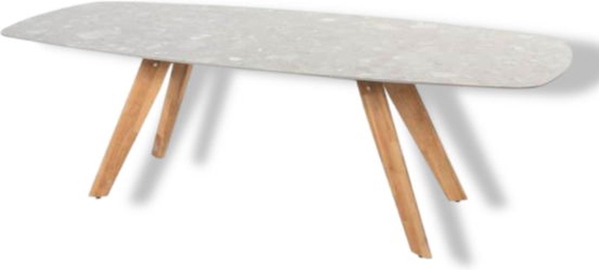 4SO Montana Tafelframe Teak Met Montana Tafelblad Ceramic Terrazzo 240 x 103 cm - - Grijs