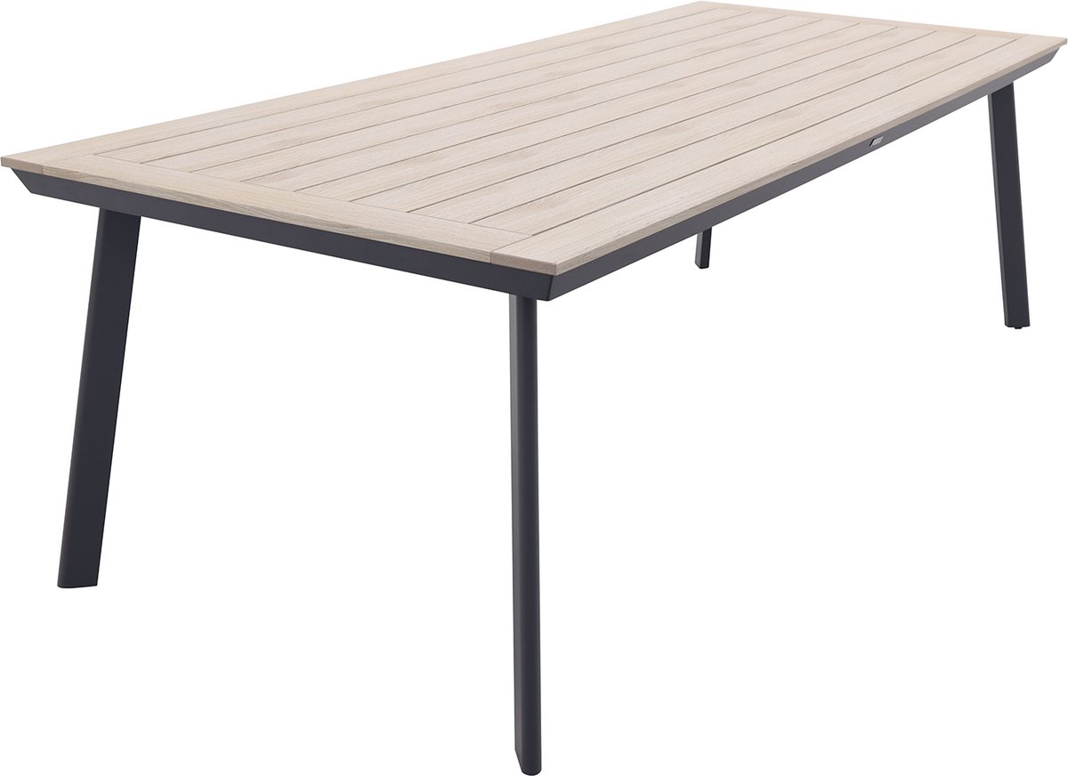 De Penedo tuintafel met een mooie houtlook uitstraling heeft een sterk aluminium frame.