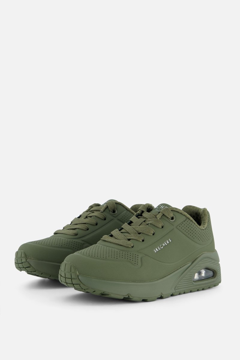 Deze Skechers Uno Stand On Air sneakers zijn volledig gemaakt van synthetisch materiaal. De sneakers zijn voorzien van air-cooled memory foam en een zichtbare air gedempte tussenzool. De zool is gemaakt van rubber en heeft een dikte van 3,2 centimeter. lees meer over dit product