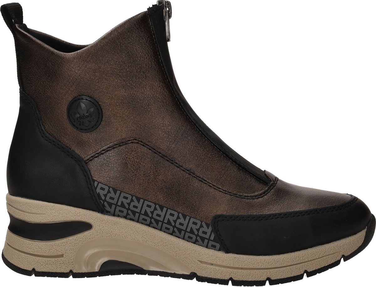 Voordelen Rieker dames boots Comfort en gemak komen samen in deze moderne boots van Rieker. Deze dames schoen is uitgevoerd in soepel kunstleer en heeft een sportieve uitstraling door de dynamische zool en gestroomlijnd ontwerp. De combinatie van bruin met zwarte accenten geeft deze boot een eigentijdse look die perfect past bij je dagelijkse outfits. Praktische ritssluiting: makkelijk aan en uit, ideaal voor dagelijks gebrui... lees meer over dit product