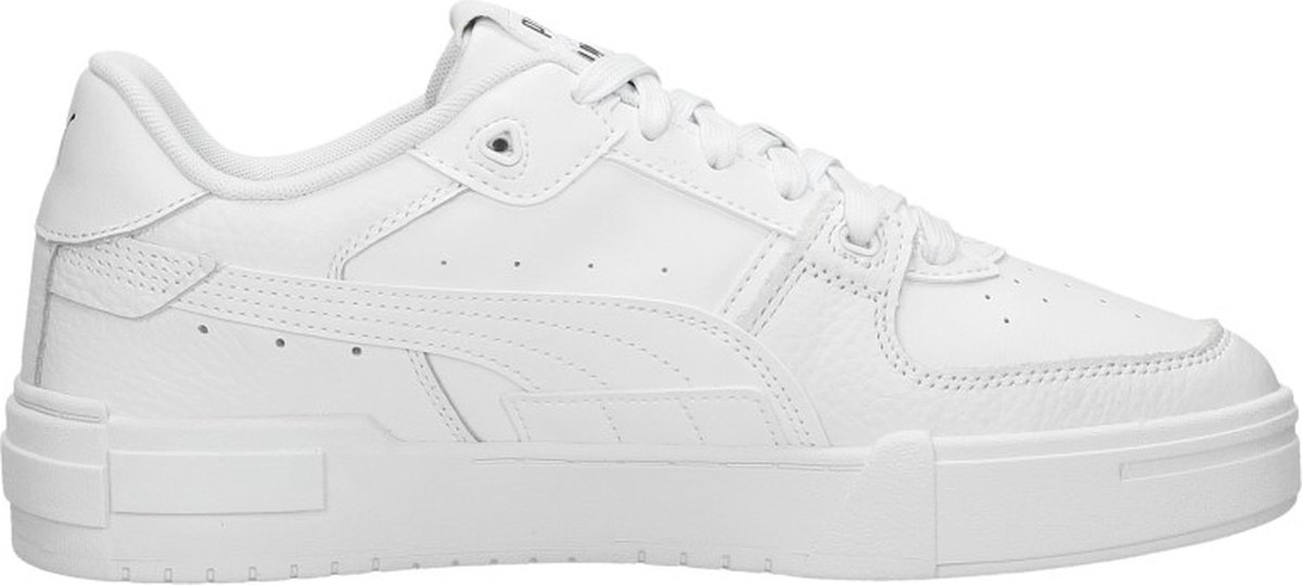 Geef je outfit een sportieve touch met deze witte, lage sneaker CA PRO GLITCH ITH van het merk PUMA. Dit model is gemaakt van gestructureerd leer en heeft kenmerkende PUMA-details, zoals de PUMA-Formstrip op de zijkant, het zwarte logo op de zijkant, het zwarte merklabel op de tong, het merkreliëf op de zoolrand en het zwarte merkopdruk op de hiel. De plateauzool van 4,5 centimeter hoog maakt dit plaatje compleet en geeft dit ... lees meer over dit product