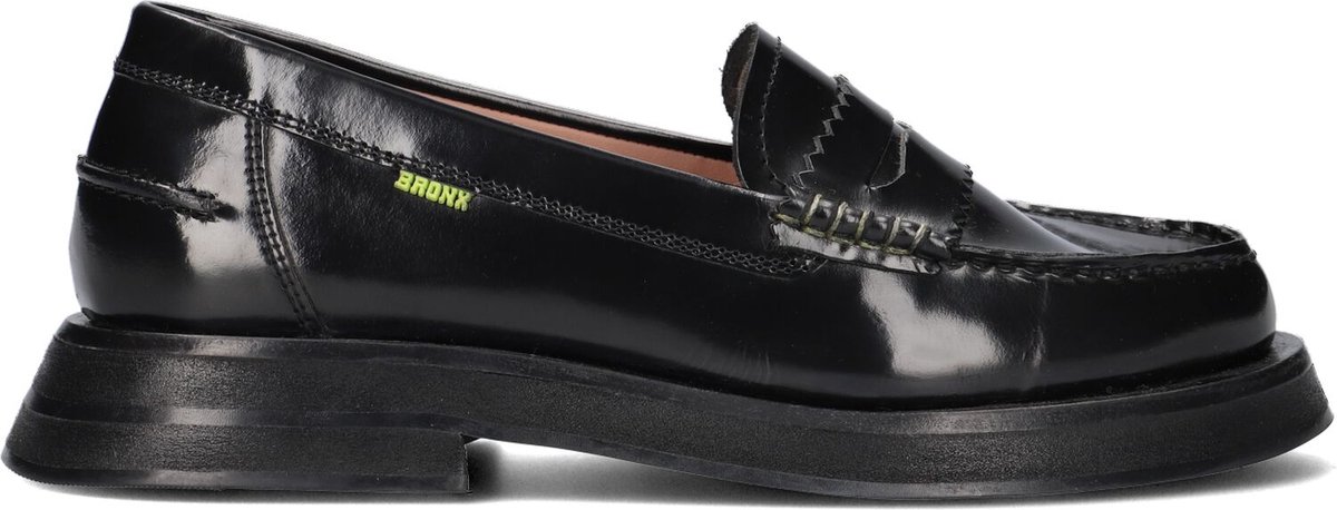 Ga voor een opvallende, stoere look met deze trendy loafer New-Frizo 66436 met toffe accenten van het merk Bronx! Dit model heeft kenmerkende accenten zoals de opstaande neus naad, de wReefband met cutout en kartelrand afwerking en natuurlijk het rubberen, groene merkembleem op de zijkant van de schacht. Het bovenwerk is uitgevoerd in opgepoetst leer, waardoor hij een hoge glans heeft en het binnenwerk is van beige leer met ee... lees meer over dit product