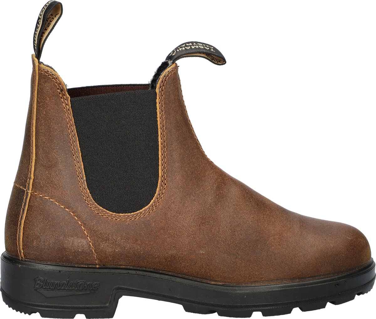 Waar je ook gaat, met de waterafstotende schoenen van het Australische merk BLUNDSTONE aan je voeten ben je klaar voor ieder avontuur! Dit zijn namelijk niet zomaar schoenen, dit zijn BLUNDSTONES! En of je nu een coole stedentrip gaat maken of toe bent aan een uitdagende outdoor wandeling, deze schoenen zorgen voor droge en comfortabele voeten de hele dag door. Ze zijn geïnspireerd op de mooie, maar ruige ondergronden van Tasmanië in Australië en hebben een stijlvol, robuust uiterlijk door de twee elastieken aan de zijkant, waardoor ze een ruime instap en een hoog loopcomfort bieden. Ze worden liefkozend 'BLUNNIES' genoemd en zijn te herkennen aan de 'pull tags' van textiel merklint op de voor- en achterkant. Deze bruine chelsea boots ORIGINAL DAMES zijn gemaakt van premium leer en hebben een textiel voering met een uitneembaar voetbed van geperforeerd textiel. Dit voetbed is orthopedisch verantwoord en heeft een hoge dempende en absorberende werking voor opmerkelijk comfort. De zolen
