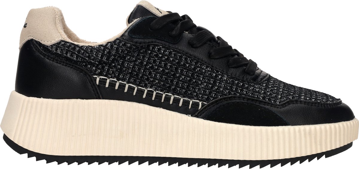 Gave Palpa Chavi sneaker voor dames met een robuuste platforn zool. De zwarte sneaker heeft een mooi patroon van textiel en is afgewerkt met leer.